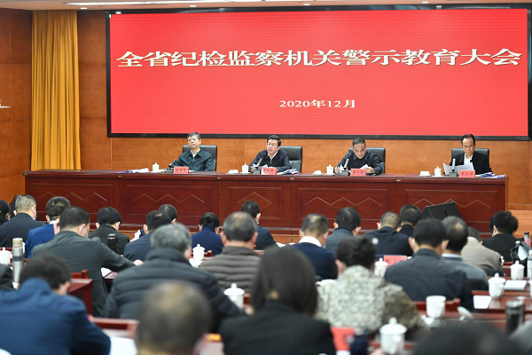 12月18日,省委常委、省纪委书记、省监委主任夏红民出席全省纪检监察机关警示教育大会。他强调,要深入学习贯彻党的十九届五中全会、省委十二届八次全会精神和省委书记谌贻琴在省纪委省监委机关调研时的指示精神,常态化运用查处的纪检监察干部违纪违法典型案例开展警示教育,深化以案释纪释法、以案促建促改,教育引导纪检监察干部始终牢记“忠诚坚定、担当尽责、遵纪守法、清正廉洁”殷殷嘱托,以铁的纪律作风锻造忠诚干净担当纪检监察铁军。