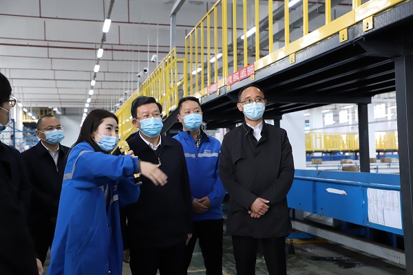 夏红民在龙里县快递物流园中通快递公司调研宣讲(黔南州纪委监委供图)