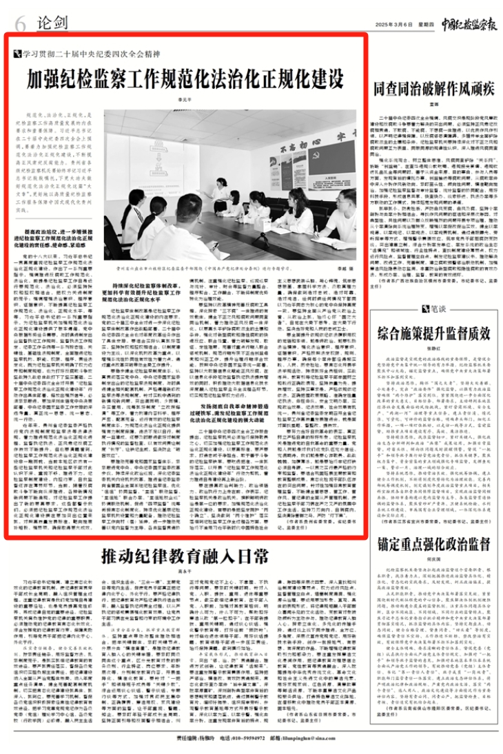 2025年3月6日,《中国纪检监察报》、中央纪委国家监委网站刊发省委常委、省纪委书记、省监委主任李元平同志署名文章《加强纪检监察工作规范化法治化正规化建设》,现予以全文转载。
