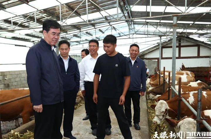 8月17日至18日,省委副书记、省长李炳军到毕节市赫章县、威宁自治县,宣讲党的二十届三中全会精神,开展全国生态日巡河巡林,督导全省半年经济工作会议重点任务落实。他强调,要认真学习贯彻党的二十届三中全会精神和习近平生态文明思想,以进一步全面深化改革为动力,推动巩固拓展脱贫攻坚成果同乡村振兴有效衔接,守好发展和生态两条底线,奋力推动高质量发展和现代化建设。省领导吴胜华、杨同光参加。李炳军在威宁自治县雪山镇雪山社区调研养牛产业发展情况。  县域特色产业、有效衔接工作是这次调研的重点。李炳军来到长通威宁新能源产业园,深入企业车间详细了解光伏全产业链发展情况,实地察看长通贵州威宁风电装备智能制造示范项目,希望企业抢抓产业发展窗口机遇期,加快拓展市场、做大做强。在威宁中垦薯业种薯培育基地,李炳军要求大力推广良种良法,提升全省粮食安全保障能力。在威宁自治县雪山镇雪山社区、灼甫联户示范牧场,李炳军指出,要积极支持家庭牧场适度规模经营,坚持抓两头带中间,发挥农民主体作用,加强品种选育及圈舍、农机、金融等保障,带动更多农村群众增收。李炳军还考察了赫章县野马川镇下街村易地扶贫搬迁安置点,强调要用好各类资源资产,帮助搬迁群众持续增收、融入城镇。  李炳军实地检查指导河湖长制、林长制落实情况并开展巡河巡林工作。在赫章县平山国有林场,李炳军要求,要发挥优势发展林下经济,因地制宜探索壮大农村集体经济路子,同时绷紧森林防火这根弦,严防发生火灾事故。在威宁草海国家级自然保护区,李炳军听取草海保护区综合治理情况汇报,强调要进一步研究完善综合治理措施,确保草海生态环境持续改善。  省政府秘书长魏树旺,毕节市和省有关部门负责同志参加。