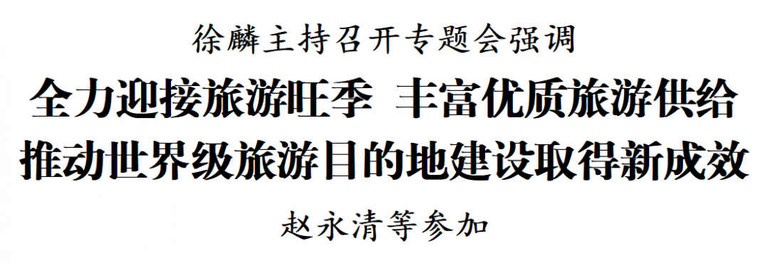 会上,省文化和旅游厅、贵州民航产业集团作了汇报,与会同志进行了深入讨论。在听取大家发言后,徐麟指出,旅游产业化是习近平总书记对贵州的殷切期望,要始终把旅游业发展摆在突出位置,以强烈的责任感紧迫感迎接“五一”旅游高峰期,扎实做好旅游旺季各项准备工作。要进一步扬长补短,认真复盘总结经验,具体深入查缺补漏,抓紧完善迎峰措施,远近结合推动重点景区功能深化、业态升级,努力让贵州旅游优势更优、强势更强、旺季更旺。要进一步加强协同,充分发挥工作机制作用,及时分析研判,强化信息沟通,推动形成强大合力。要进一步强化推介,瞄准重点客源市场,多平台、多渠道、多方式强化营销推广。要进一步做好安全保障,深入开展重大风险隐患排查整治工作,加强应急值班值守,严厉打击各种市场乱象,牢牢守好安全底线和监管红线。要进一步完善规划,以一流规划引领建设一流景区。要进一步深化改革,充分调动各方资源力量,更好推动景区建设提档升级,提升旅游业创新发展活力。