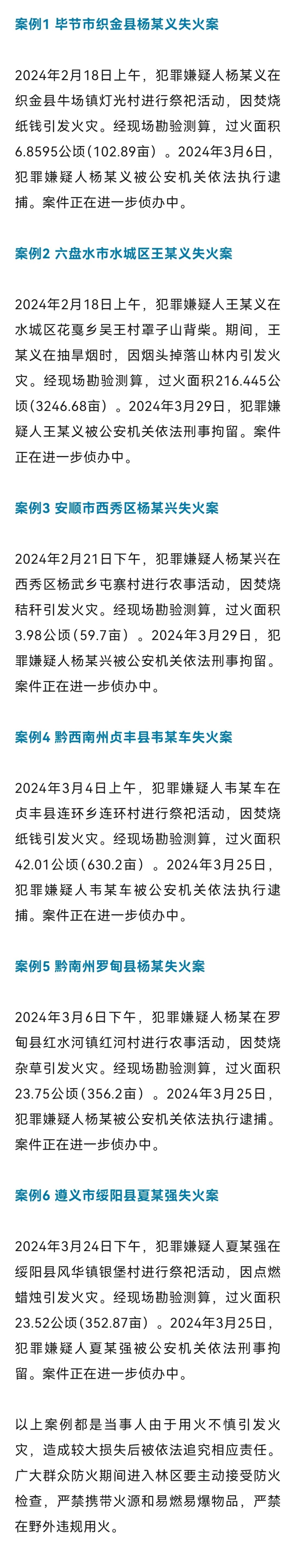 贵州公安机关通报6起森林火灾典型案例