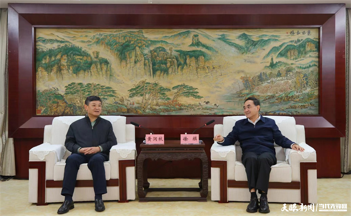 10月7日,正在铜仁调研的省委书记、省人大常委会主任徐麟,会见来黔调研的生态环境部部长黄润秋一行。省委常委、省委秘书长陈少波,副省长杨同光参加。