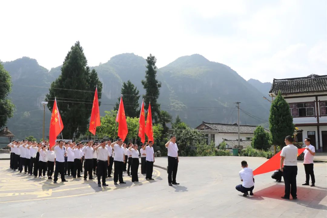 在红色廉政文化示范教育基地枪杆岩,纳雍县纪委监委党员干部在烈士浮雕前、白墙青瓦旁重温入党誓词,接受思想洗礼,提升党性修养。(纳雍县纪委监委供 杨振业 摄)