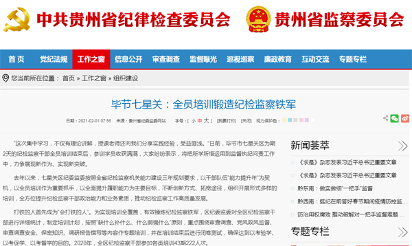 2021年2月1日贵州省纪委监委网站 工作之窗