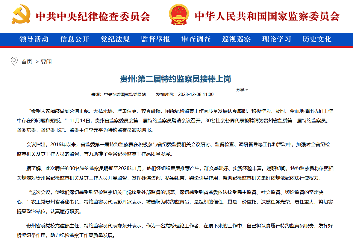 中央纪委国家监委网站 | 贵州:第二届特约监察员接棒上岗