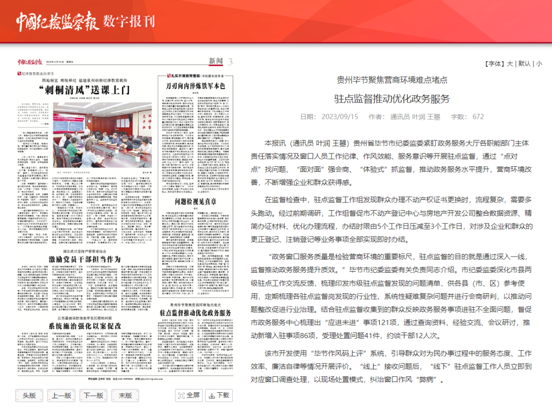 中国纪检监察报 | 贵州毕节聚焦营商环境难点堵点 驻点监督推动优化政务服务