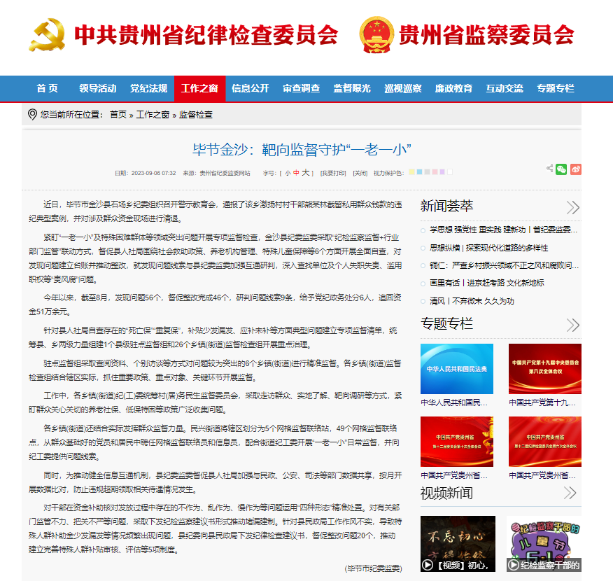 贵州省纪委监委网站 | 毕节金沙:靶向监督守护“一老一小”