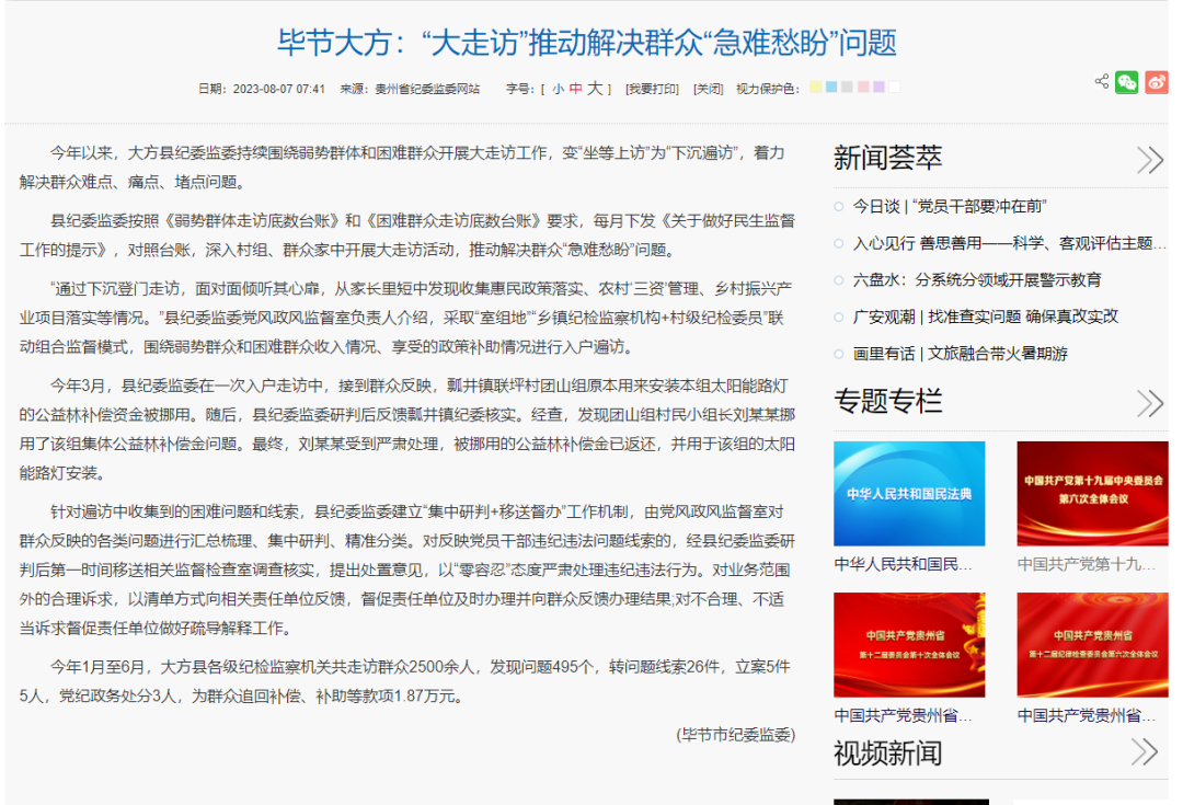 贵州省纪委监委网站 | 毕节大方:“大走访”推动解决群众“急难愁盼”问题