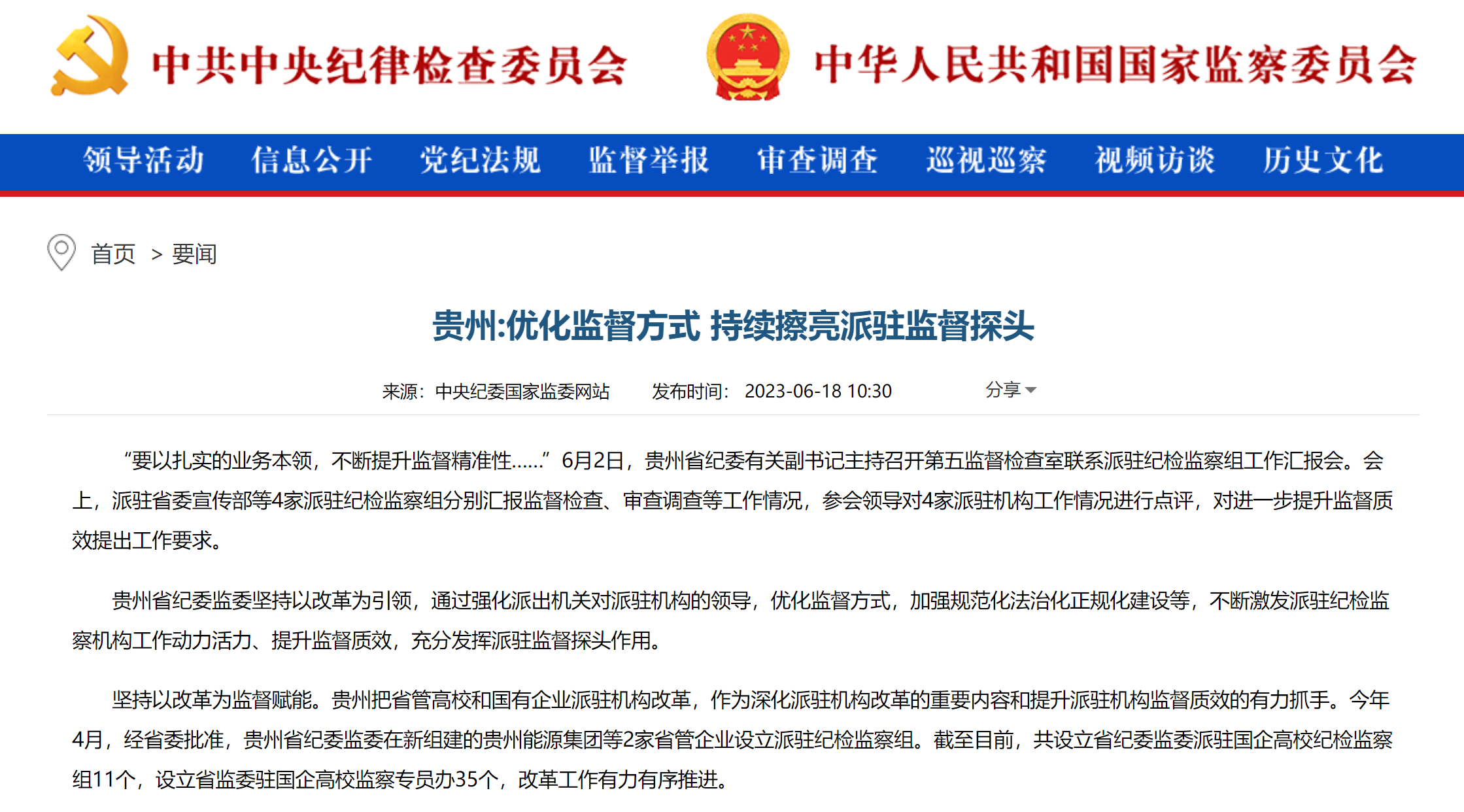 中央纪委国家监委网站 | 贵州:优化监督方式 持续擦亮派驻监督探头