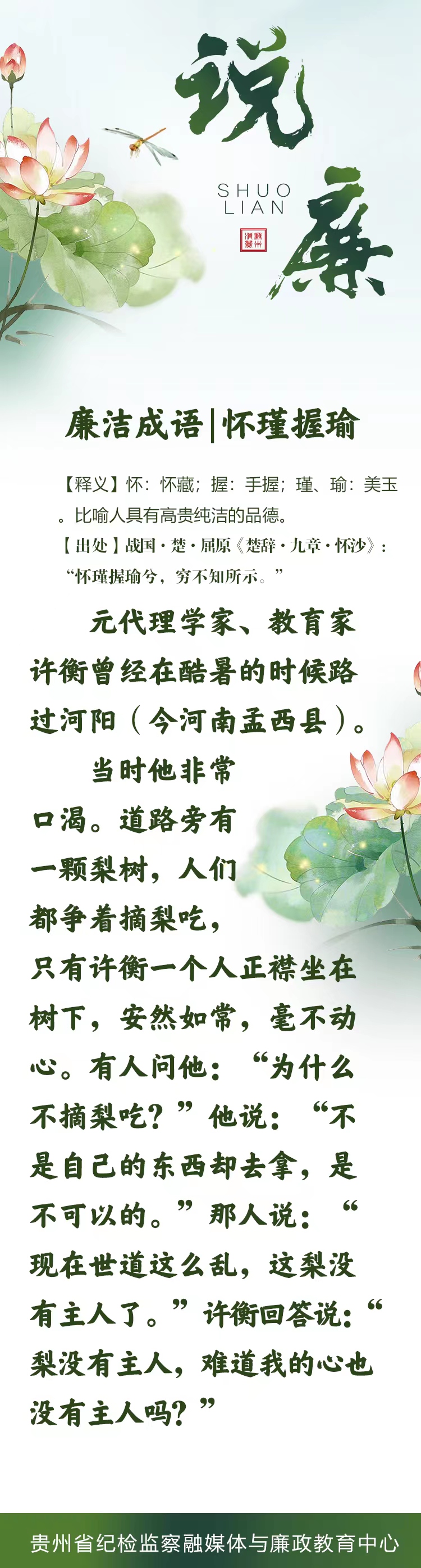 周日说廉 | 廉洁成语:怀瑾握瑜