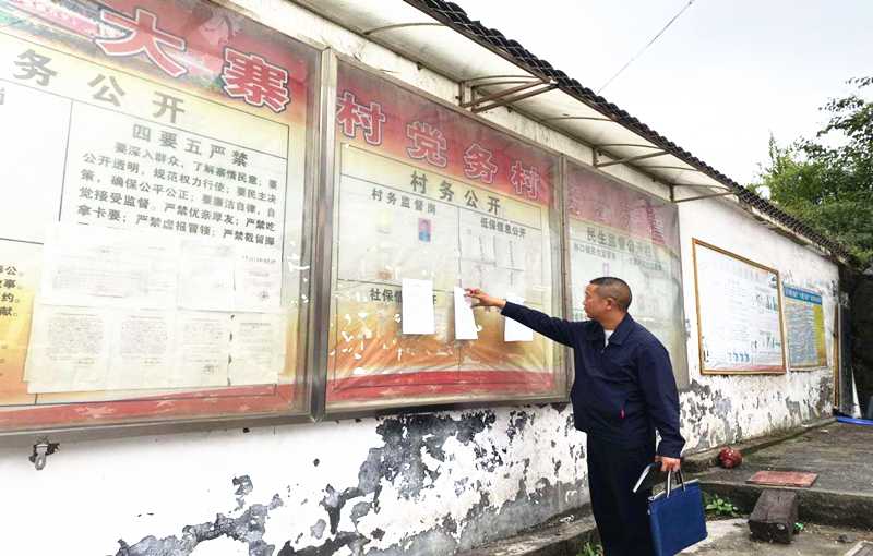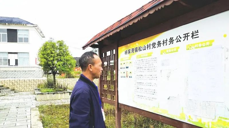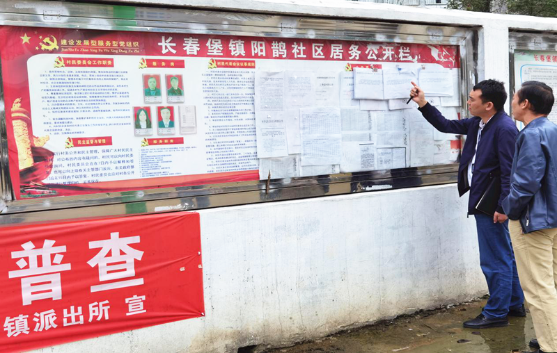 图为杨家湾镇松山村村务(民生)监督委员会成员监督村务公开公示情况。(薛富 / 摄)