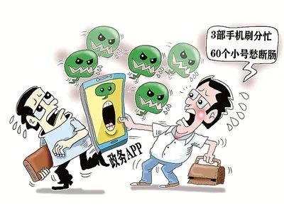 近日,有媒体报道,大量的政务APP占用基层公务员的工作时间,沦为形式主义的帮凶。报道中写道:“一人照管60个手机APP账号、3部手机随时连着充电宝、上厕所开会都不忘‘刷分’,这是部分社区工作者在应付各种形式化考核时的情景。”