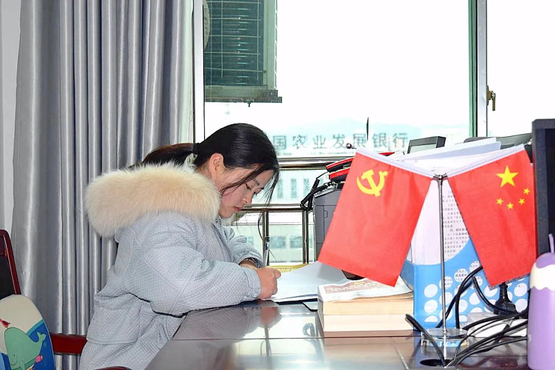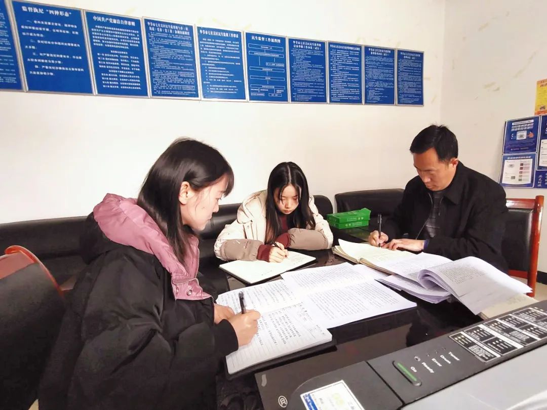 青场镇纪检监察干部段彦华(左一)张迪(左二)与其他纪检监察干部一起认真学习相关业务知识。