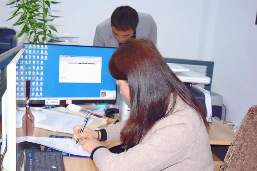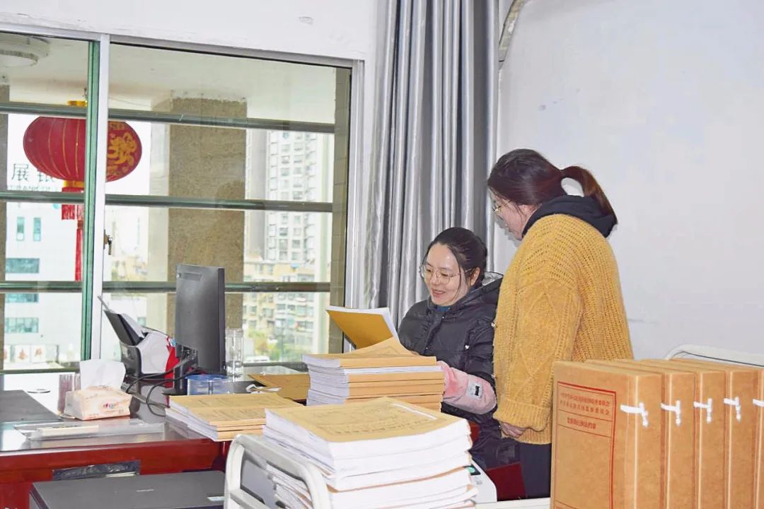 区纪委区监委档案管理干部苏红梅查看卷宗资料。