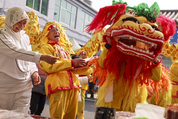 云南省砚山县主打非遗过大年,在主要集市区各民族载歌载舞、舞龙舞狮,上演着欢欢喜喜过大年的热闹场景。(云南省砚山县纪委监委 王艳 摄)