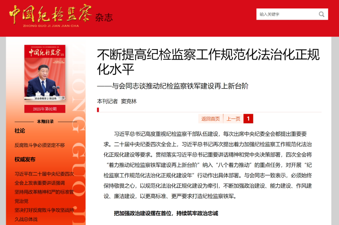 不断提高纪检监察工作规范化法治化正规化水平——与会同志谈推动纪检监察铁军建设再上新台阶
