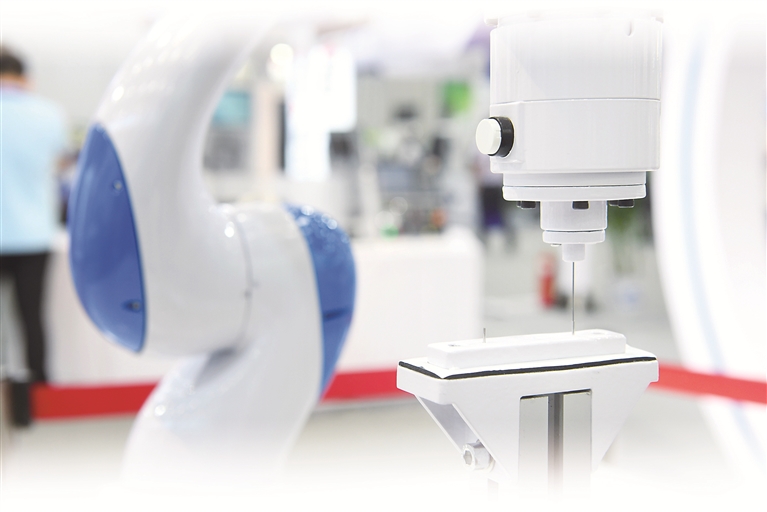 我国自主研发的协作机器人,精度达到0.02毫米,具备碰撞检测和拖动示教等功能,主要应用于高精度制造领域。