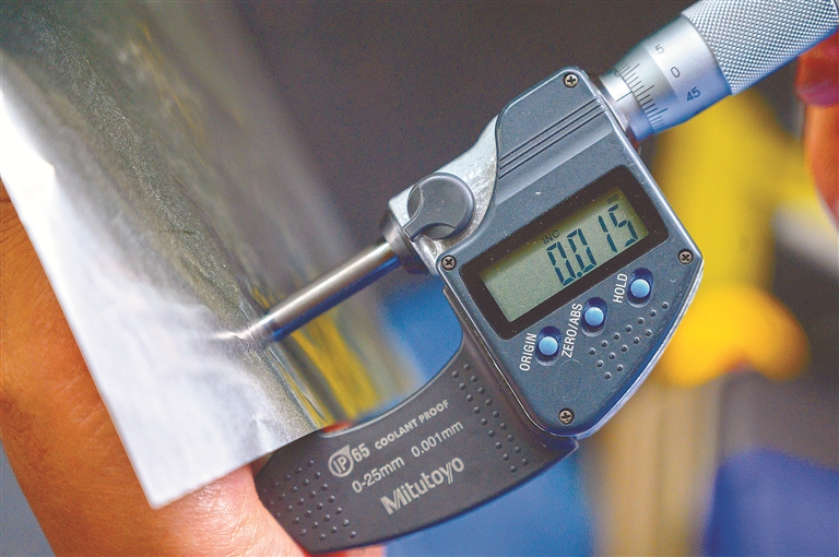 中国宝武太钢不锈钢精密带钢有限公司生产的“手撕钢”。通过技术攻关,这种钢材逐渐变薄,从最初的0.1毫米发展到如今的0.015毫米。