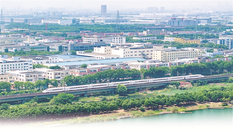 近年来,长三角一体化发展取得显著成效,基础设施互联互通水平不断提升。图为近日开通的长三角超级环线高铁列车疾驰经过苏州昆山境内。 图片来源:视觉中国