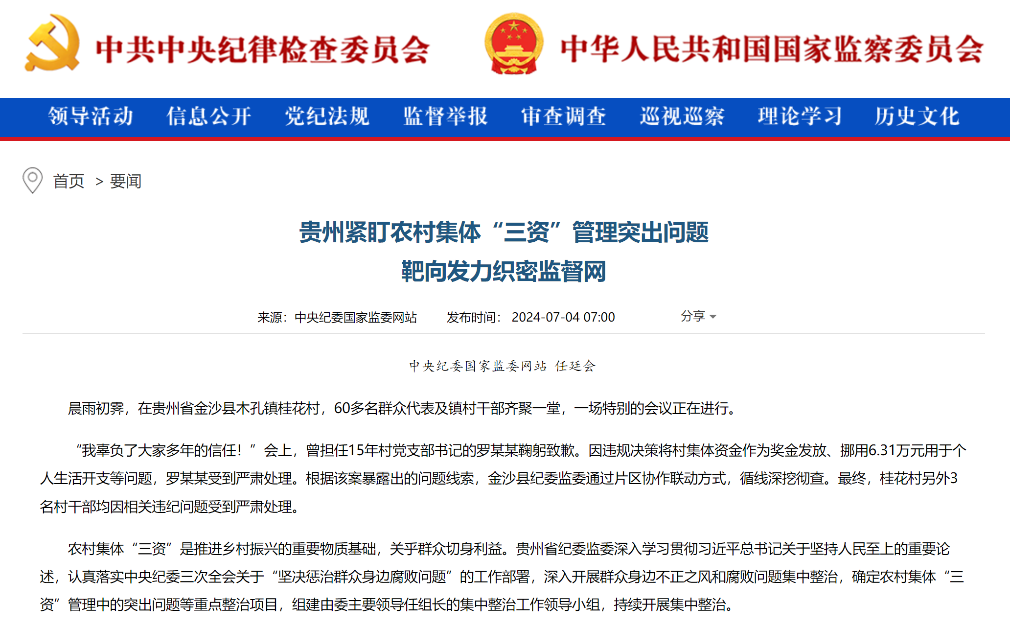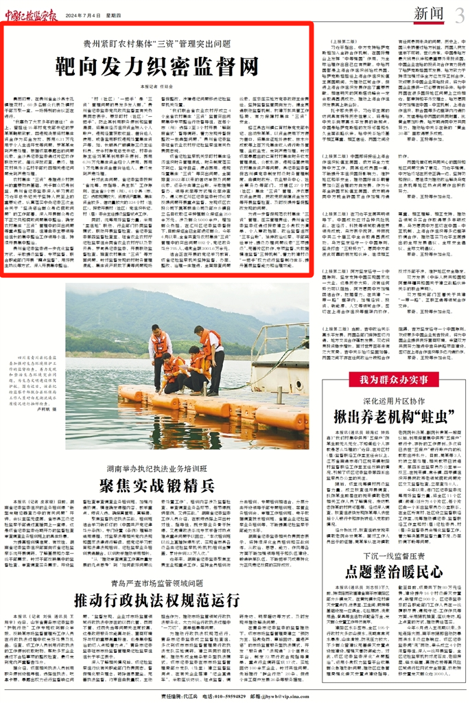《中国纪检监察报》“新闻”版头条、中央纪委国家监委网站| 贵州紧盯农村集体“三资”管理突出问题 靶向发力织密监督网