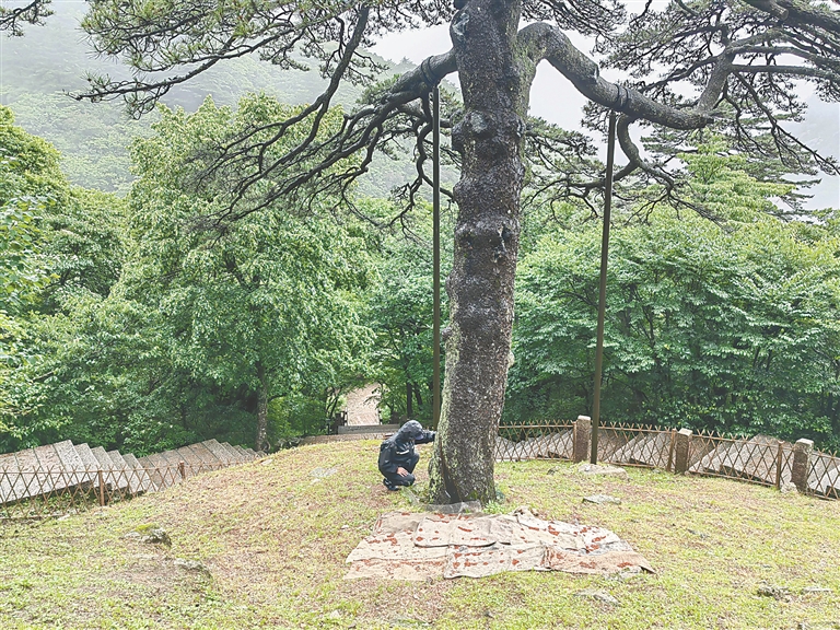 近日,安徽黄山风景区迎来持续强降水,为降低灾害性天气对古树名木的影响,景区园林部门组成保护应急小分队,根据“一树一策”、雨情风情实时开展应急保护作业,以实际行动守护“有生命的文物”。