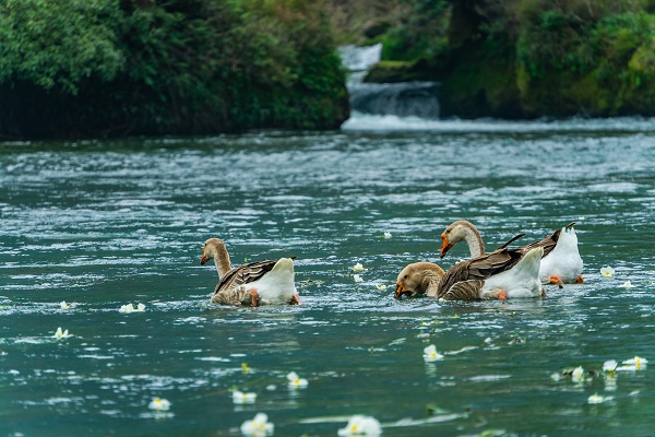 鹅鸭不知春去尽,争随流水趁桃花。(广西壮族自治区鹿寨县纪委监委 覃智锋 摄)