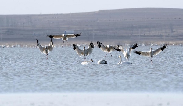 狂吟辞舞双白鹤,霜翎玉羽纷纷落。(沈阳市法库县纪委监委供 张春生 摄)