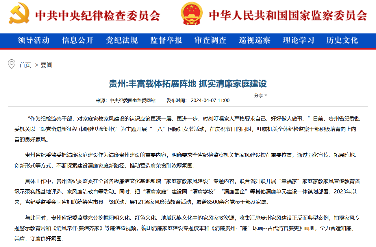 中央纪委国家监委网站 | 贵州:丰富载体拓展阵地 抓实清廉家庭建设