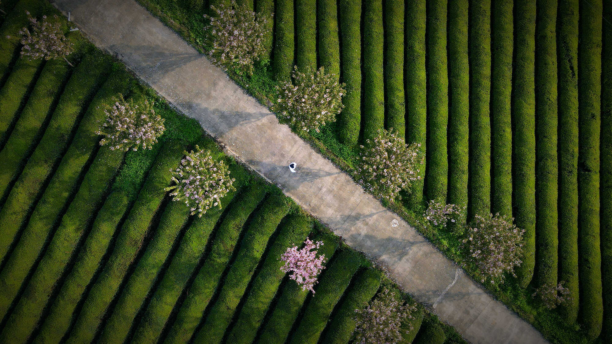 清明前后,田间小道旁,茶树吐露新绿,繁花烂漫盛放,万物吐故纳新,春和景明。(贵州省金沙县纪委监委供 陈岑 摄)