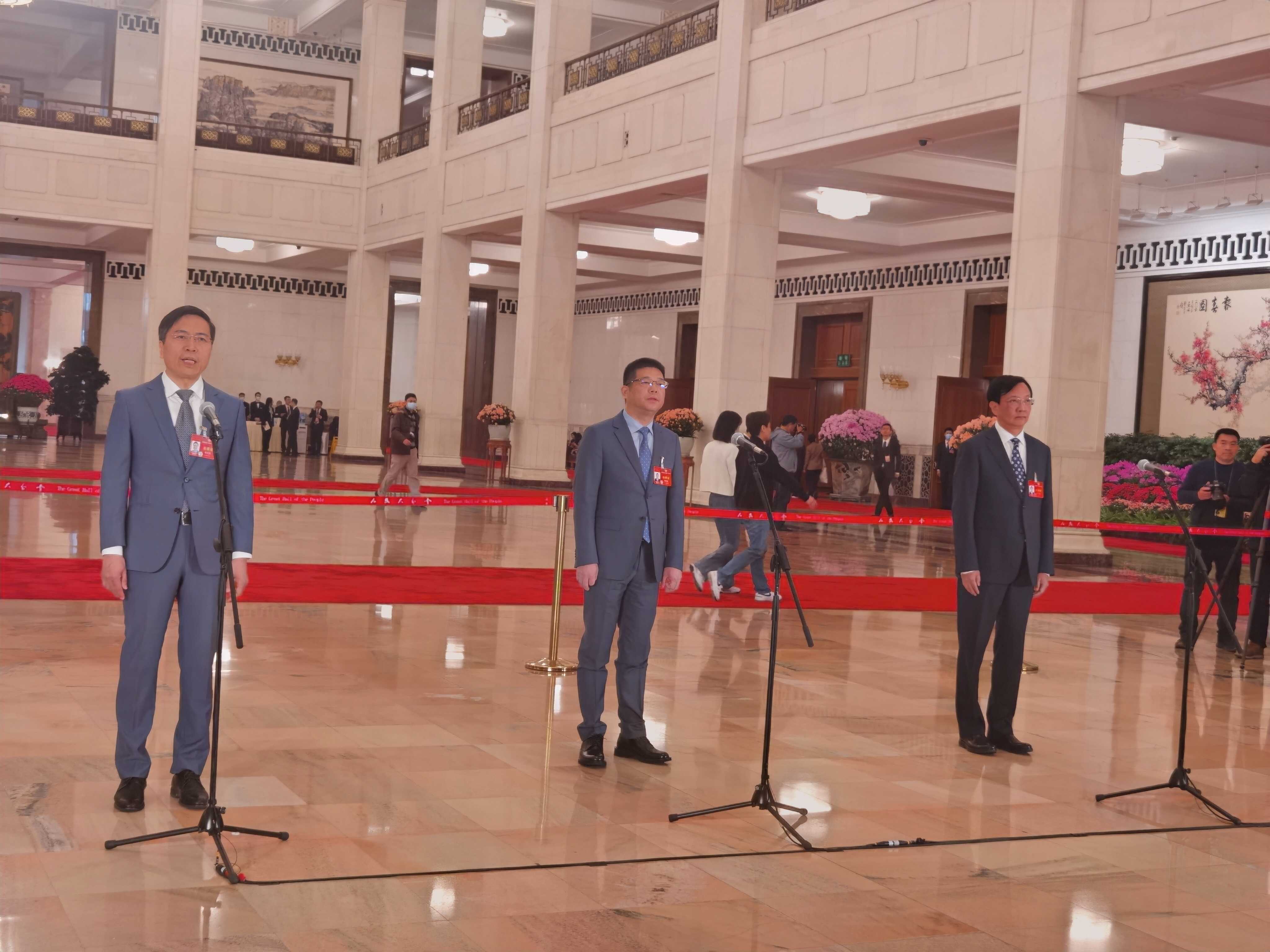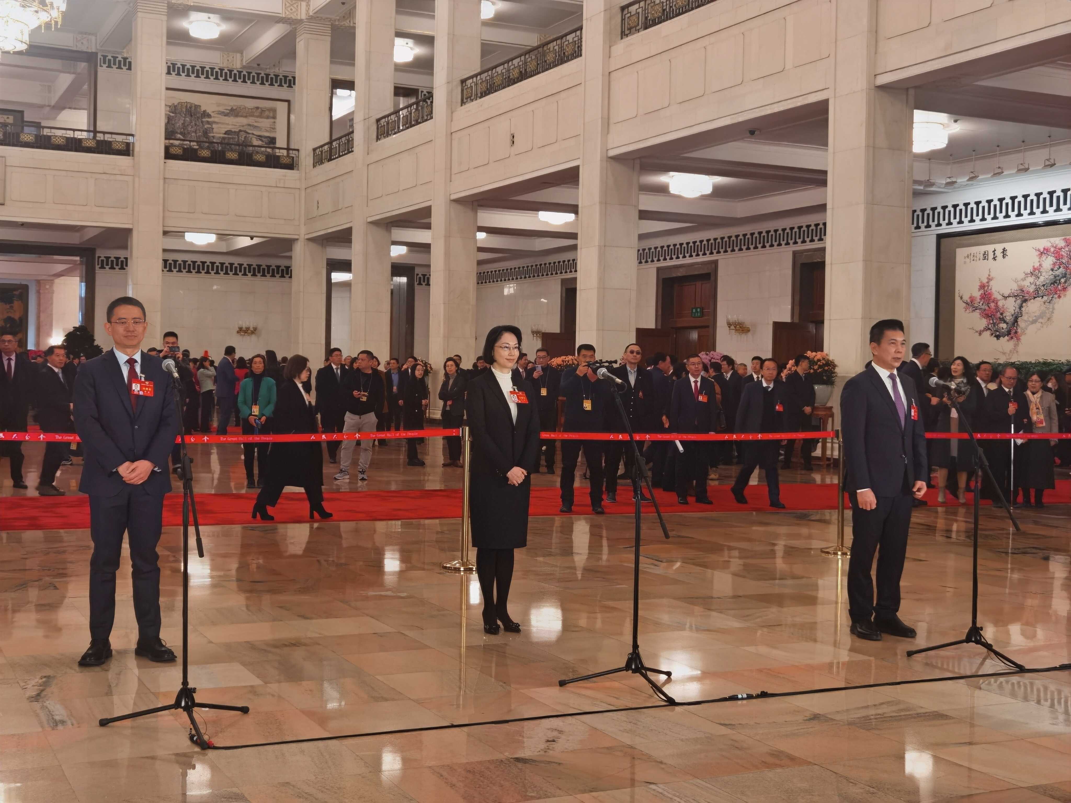 3月10日上午,全国政协十四届二次会议第三场“委员通道”集体采访活动在北京人民大会堂举行。本网记者黄秋霞摄
