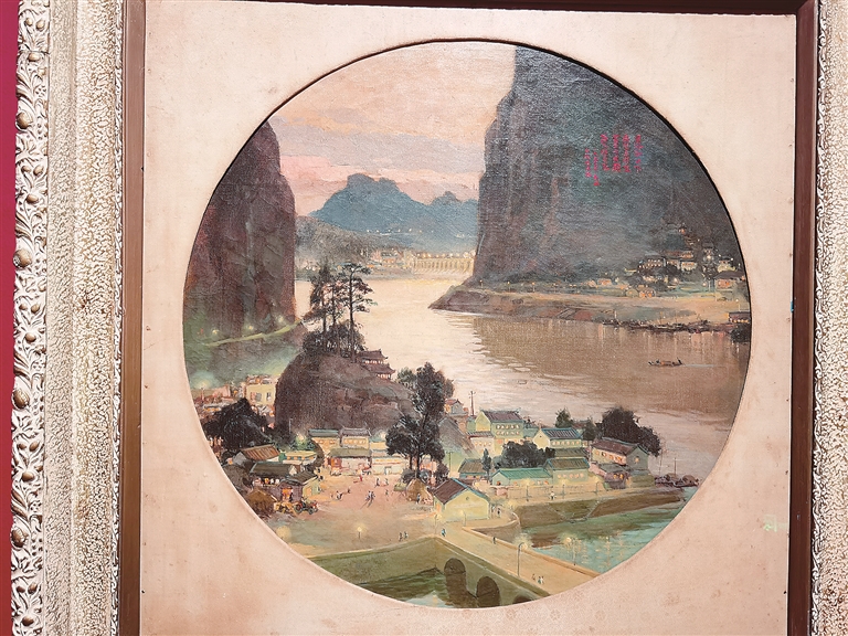 黎冰鸿油画《水电站发电了》。张艺瑶 摄
