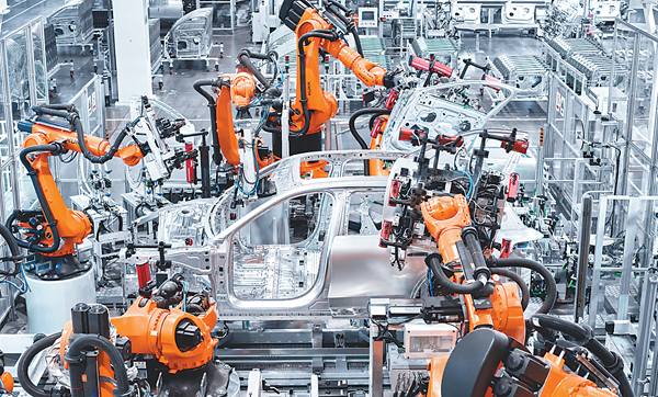 位于安徽省合肥市的蔚来第二先进制造基地是一座数字化智能工厂,采用了“天工”智能制造管理系统、“魔方”车辆存取平台、“飞地”自动装配岛等多项前沿技术,突破了传统大规模生产与个性化定制之间的矛盾局限,可满足用户个性化订购新能源汽车的需求。图为该制造基地内景。新华社发