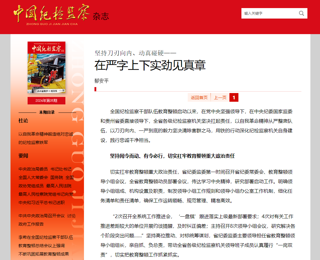 《中国纪检监察》杂志 | 坚持刀刃向内、动真碰硬——在严字上下实劲见真章