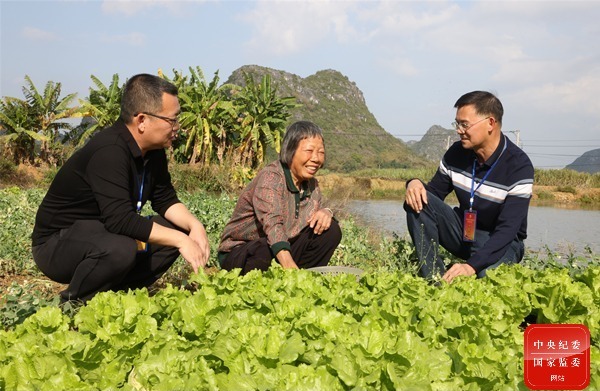 广西壮族自治区扶绥县纪委监委组织纪检监察干部下基层走访脱贫监测户,加强对帮扶政策、惠农资金落实等情况的监督检查,确保惠农政策落实落地。图为该县纪检监察干部向脱贫监测户了解跟踪帮扶政策落实情况。(广西壮族自治区扶绥县纪委监委 黄丽萍 摄)