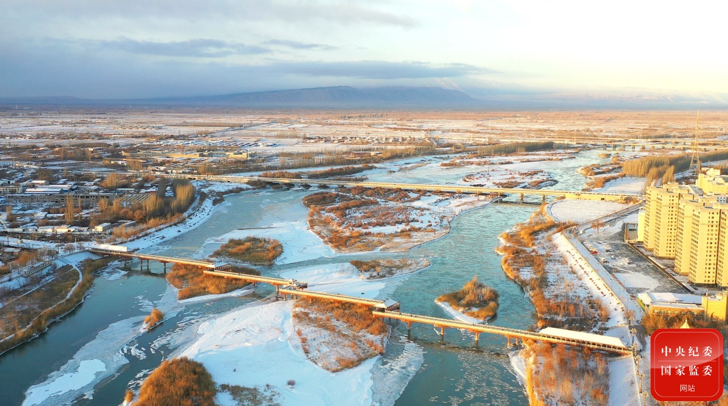 新疆维吾尔自治区焉耆回族自治县开都河面结成冰花,或大或小、或薄或厚,成簇成堆,随着蜿蜒的河水潺潺流动。(新疆维吾尔自治区焉耆回族自治县纪委监委供 杨志荣 摄)