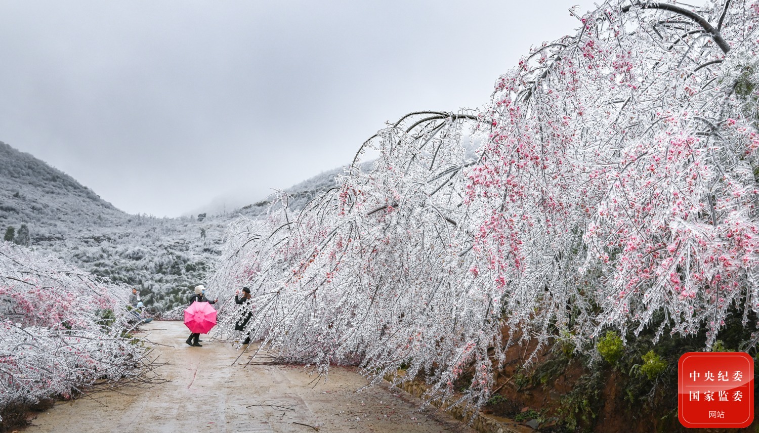 受寒潮天气影响,广东省连州市三水瑶族乡迎来大规模雾凇景观,玉树琼枝,千姿百态,吸引游人纷至沓来。(广东省连州市纪委监委供 吴秋伟 摄)