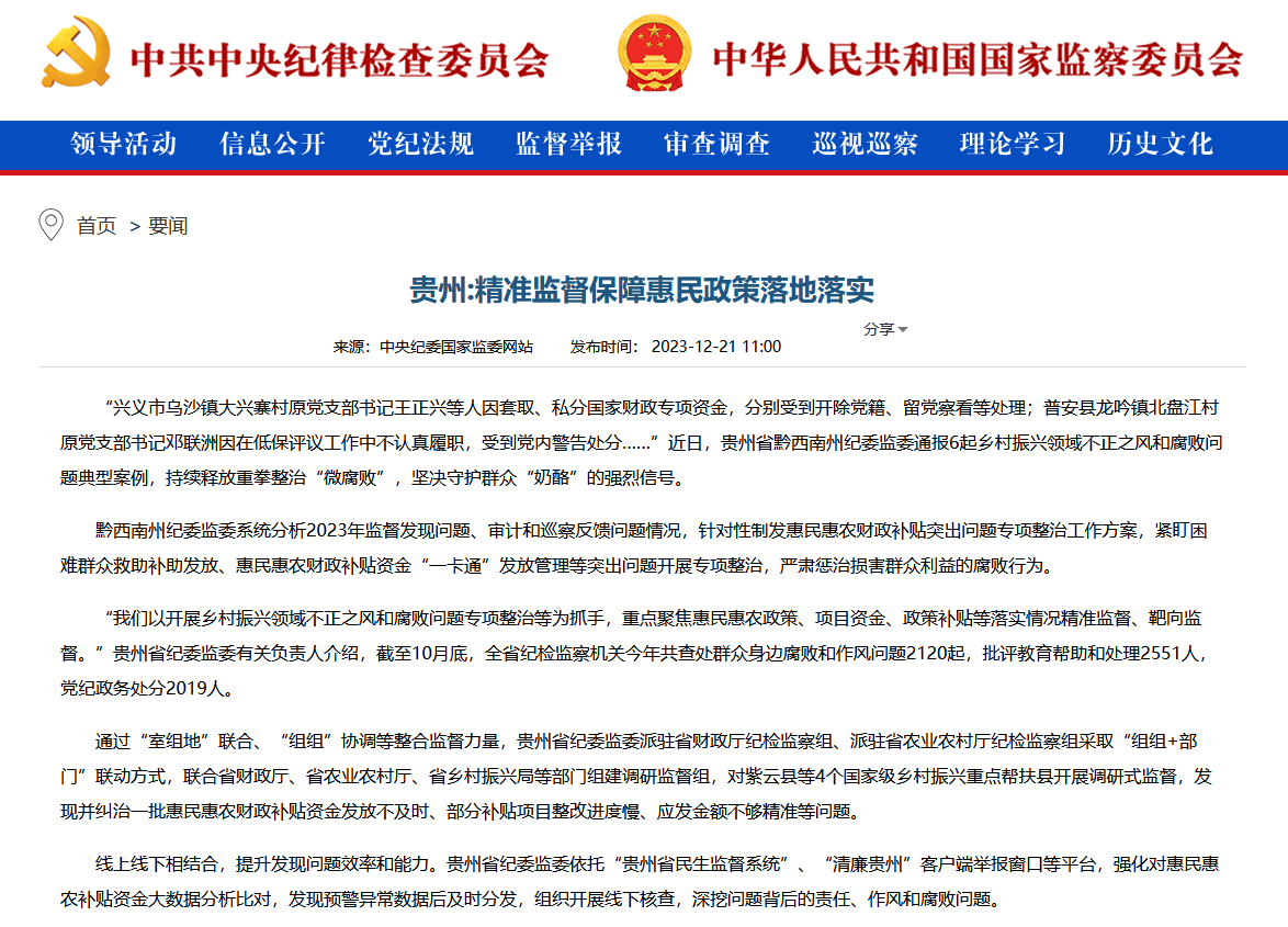中央纪委国家监委网站丨贵州:精准监督保障惠民政策落地落实